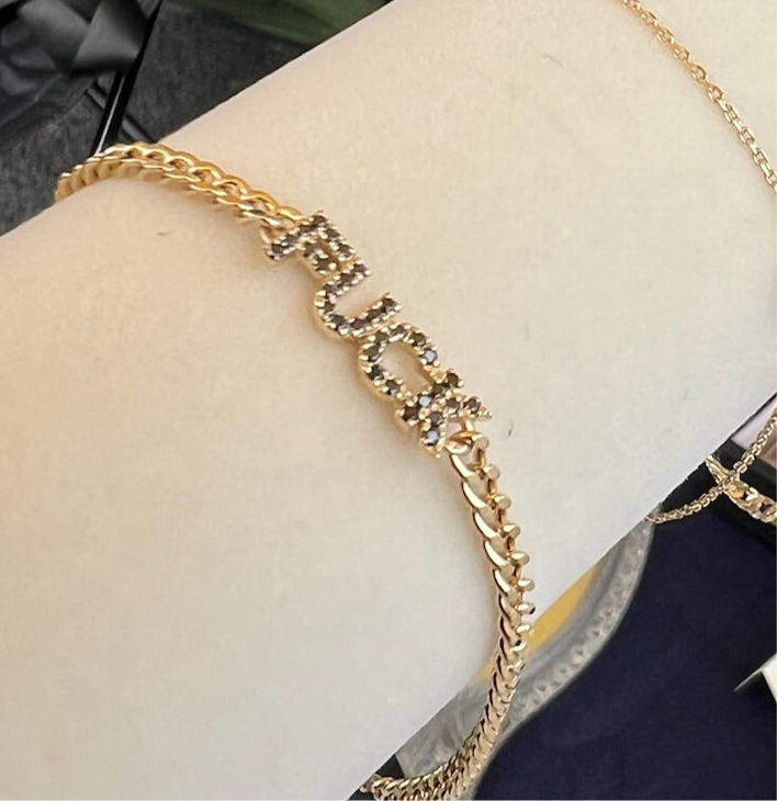 Show your edgy side with our Black Diamond FUCK bracelet. Make a statement with this cuban chain bracelet featuring the word “FUCK” set with black diamonds.