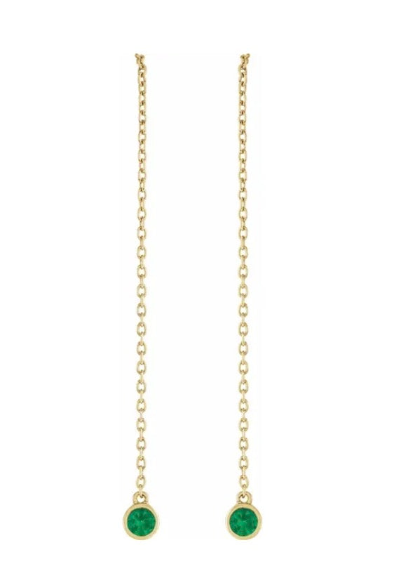This pair of natural emerald threader earrings is the perfect addition to any earring stack. They're versatile, elegant, and can add a pop of color to any look!