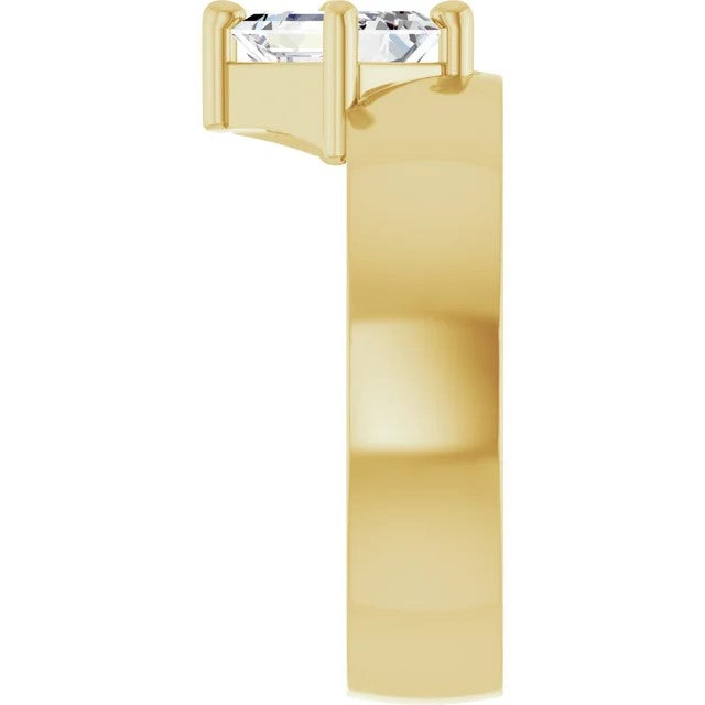 Say yes to the coolest engagement ring curated by our very own Hailey! A wide band with an asymmetrical set emerald cut stone.