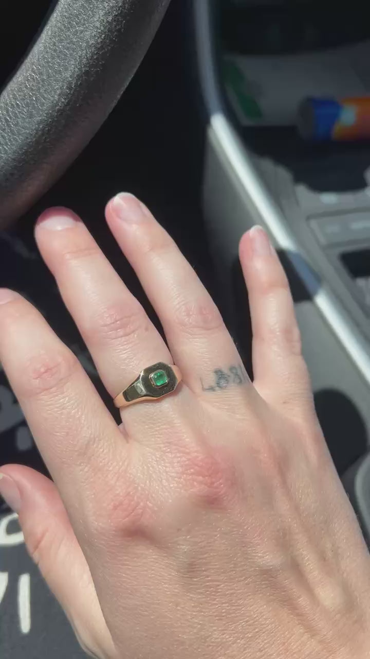 This isn’t your ordinary signet ring! Add a pop of color to your style with our Rectangle Emerald Signet Ring. Featuring a striking emerald gem, this ring will elevate any outfit.