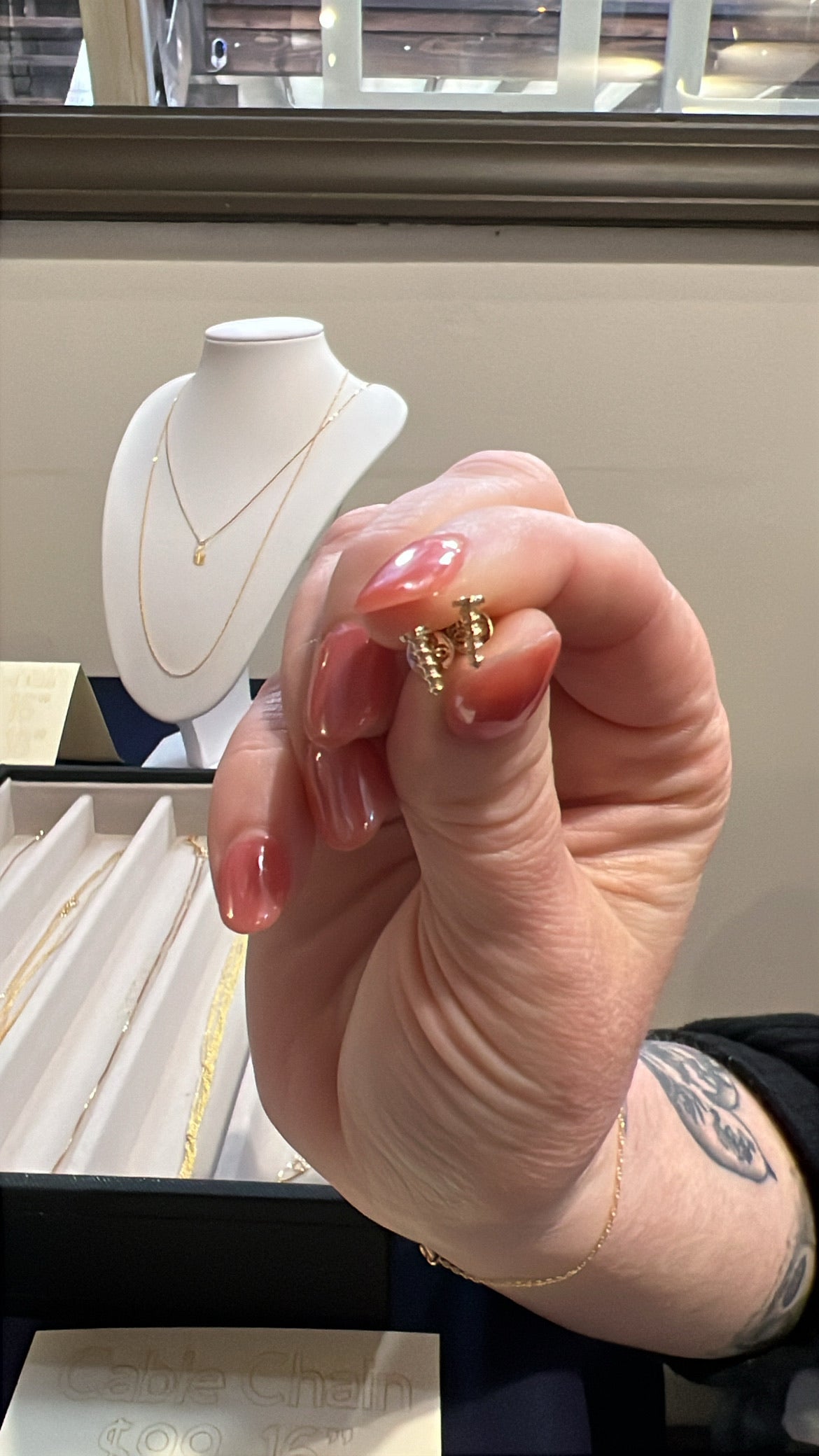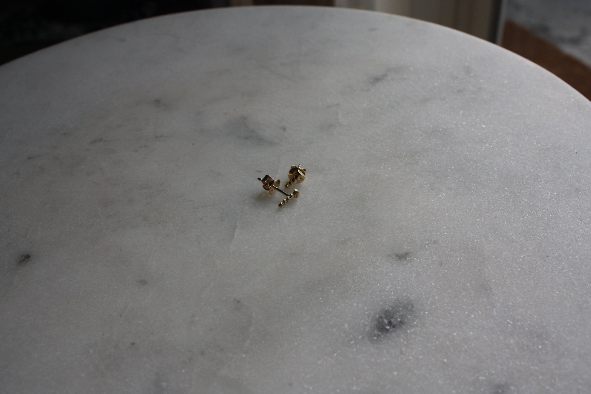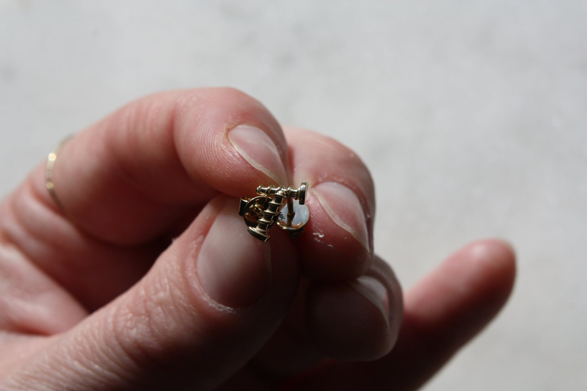 These solid 14k screw stud earrings are the perfect twist on a stud. Sold as a pair and each stud weighs .42 grams.